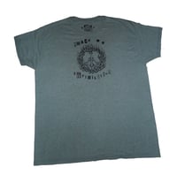 Pulled by hand at Vital Remains in LA — Grey Hanes tee featuring the Peace or Annihilation print, a collab between me and my boo, with original ink by Poke Daddy.